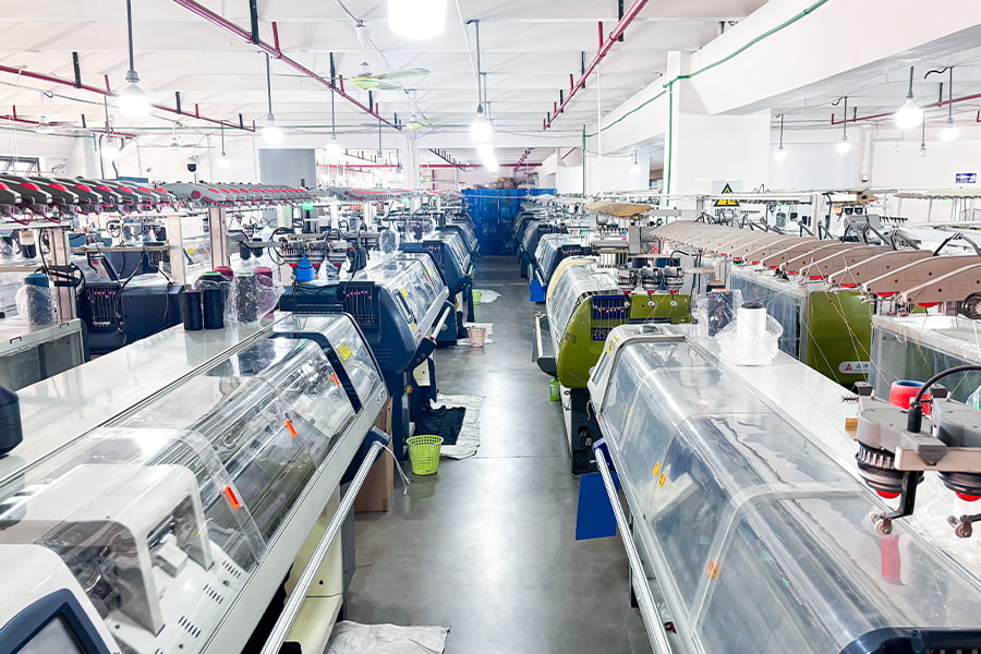 تتمتع الشركة بـ 200 ماكينة حياكة محوسبة متطورة لضمان إنتاج فعال وجودة منتج ممتازة لتلبية الاحتياجات المتنوعة للعملاء العالميين.