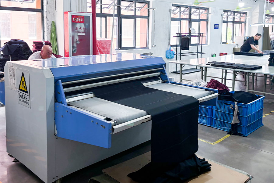 معالجة الإعداد: يعتبر الإعداد خطوة أساسية لتثبيت القماش بشكل وحجم معين عن طريق التسخين والتمدد مما يساعد على الحفاظ على ثبات القماش وتقليل مخاطر الانكماش والتشوه. خاصة بالنسبة للأقمشة المحبوكة المضلعة، فإن معالجة الإعداد يمكن أن تجعل خطوطها أكثر تجانسًا وثلاثية الأبعاد، مما يحسن التأثير البصري العام.
