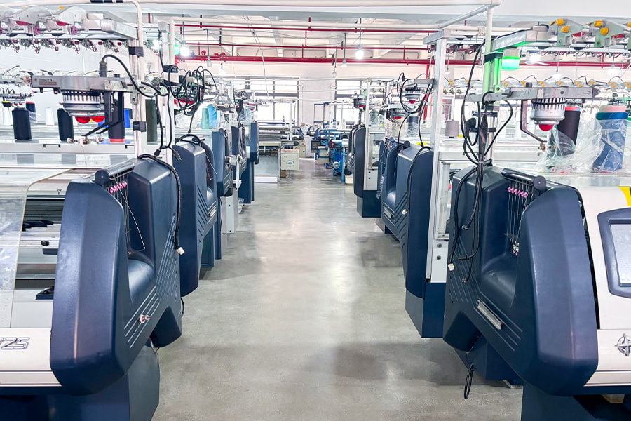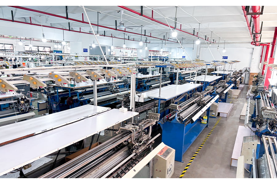 تتمتع الشركة بـ 200 ماكينة حياكة محوسبة متطورة لضمان إنتاج فعال وجودة منتج ممتازة لتلبية الاحتياجات المتنوعة للعملاء العالميين.